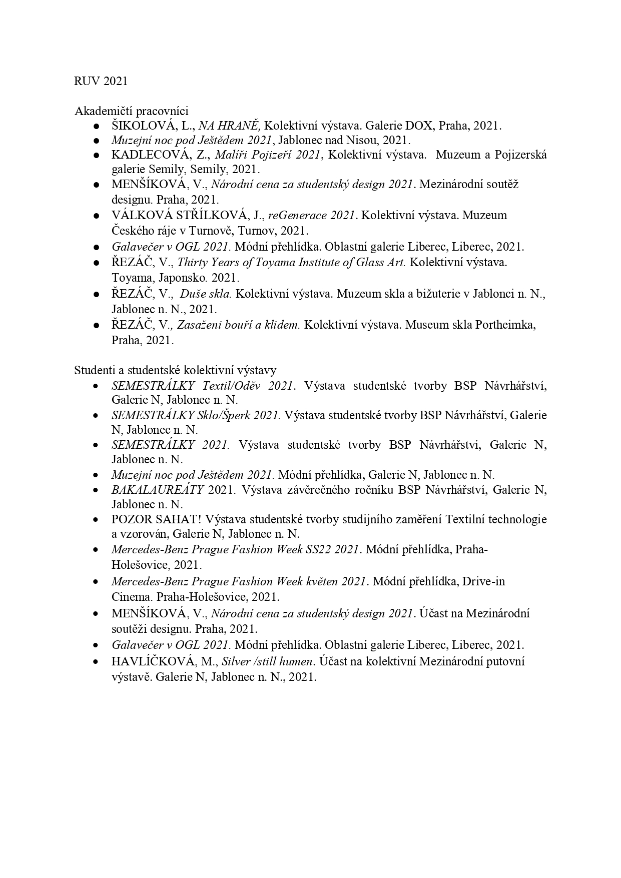 Výstavní a tvůrčí činnost (RUV) obrazová část