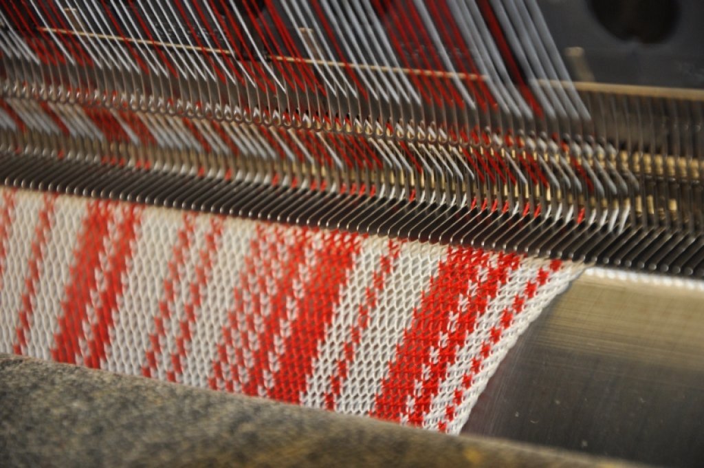 Stroj na výrobu jednolícních osnovních pletenin. Pracovní šířka: 100 cm Dělení: 12E 6 mechanicky ovládaných kladecích lišt vzorovacím řetězem Osnovy podávané z osnovních válů |
