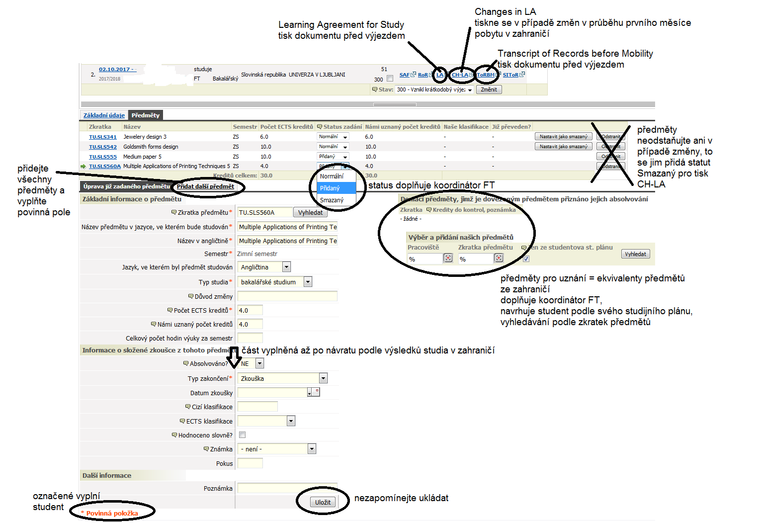 Studenti: Přihlášky zadávejte přes IS/STAG a vložte vyplněnou a podepsanou přihlášku jako dokument.